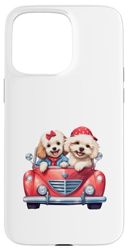 Cute Cockapoo Doodle Dogs in Red Car Heart Valentines Day Case for iPhone 15 Pro Max