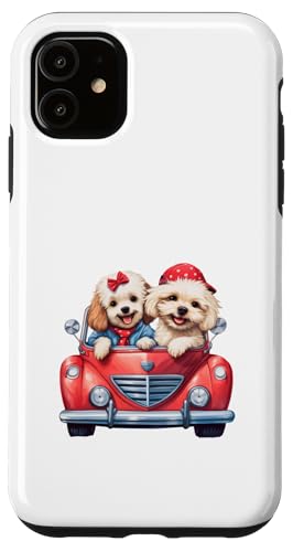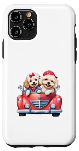 Cute Cockapoo Doodle Dogs in Red Car Heart Valentines Day Case for iPhone 11