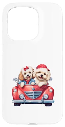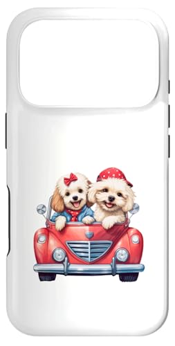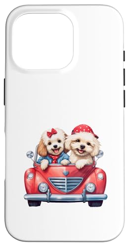 Cute Cockapoo Doodle Dogs in Red Car Heart Valentines Day Case for iPhone 16 Pro