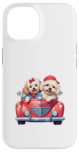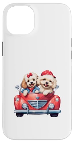 Cute Cockapoo Doodle Dogs in Red Car Heart Valentines Day Case for iPhone 14 Plus
