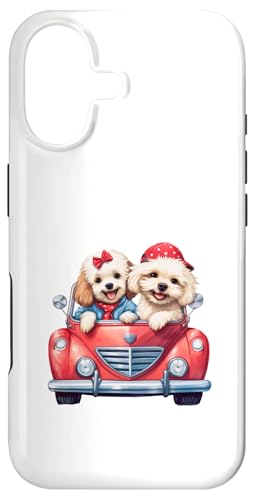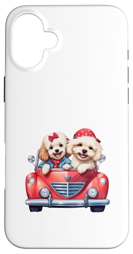 Cute Cockapoo Doodle Dogs in Red Car Heart Valentines Day Case for iPhone 16 Plus