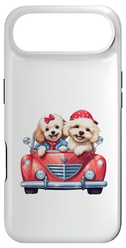 Cute Cockapoo Doodle Dogs in Red Car Heart Valentines Day Case for iPhone 17 Pro Max