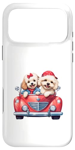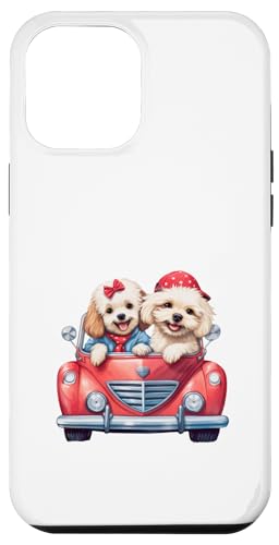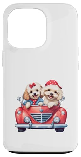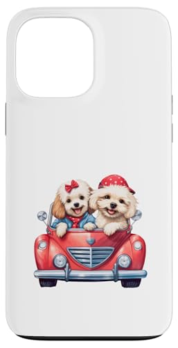 Cute Cockapoo Doodle Dogs in Red Car Heart Valentines Day Case for iPhone 13 Pro Max
