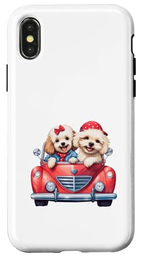 Cute Cockapoo Doodle Dogs in Red Car Heart Valentines Day Case for iPhone XS Max