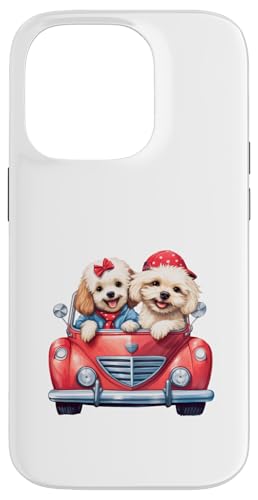 Cute Cockapoo Doodle Dogs in Red Car Heart Valentines Day Case for iPhone 14 Pro