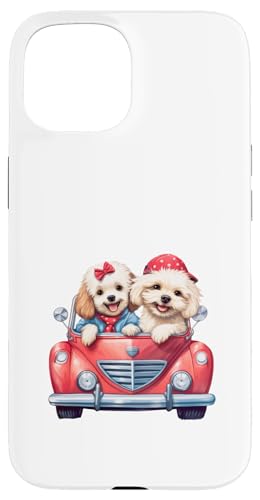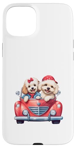 Cute Cockapoo Doodle Dogs in Red Car Heart Valentines Day Case for iPhone 15 Plus