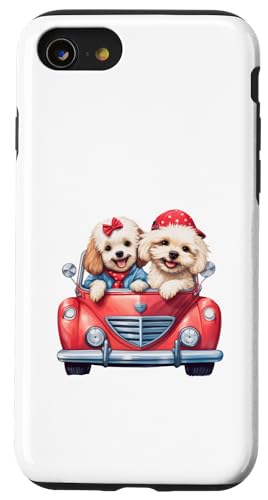 Cute Cockapoo Doodle Dogs in Red Car Heart Valentines Day Case for iPhone SE (2020) / 7/8