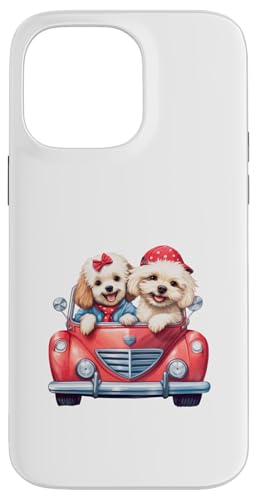 Cute Cockapoo Doodle Dogs in Red Car Heart Valentines Day Case for iPhone 14 Pro Max