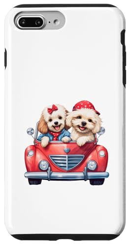 Cute Cockapoo Doodle Dogs in Red Car Heart Valentines Day Case for iPhone 7 Plus/8 Plus