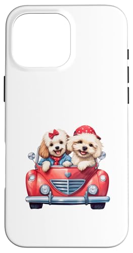 Cute Cockapoo Doodle Dogs in Red Car Heart Valentines Day Case for iPhone 16 Pro Max