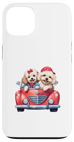 Cute Cockapoo Doodle Dogs in Red Car Heart Valentines Day Case for iPhone 13