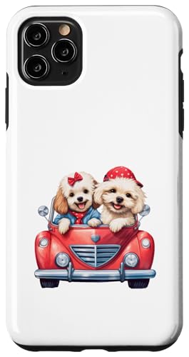 Cute Cockapoo Doodle Dogs in Red Car Heart Valentines Day Case for iPhone 11 Pro Max