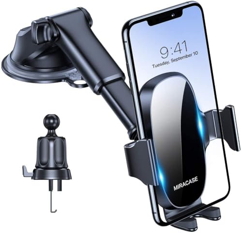 Miracase 2025 Car Phone Holder for Cars Dashboard Windscreen Air Vent Desk, 4 in 1 Mobile Phone Mount Automobile Cradle 360° Rotatable Stand for iPhone, Samsung, All 4.0''-7'' Smartphones