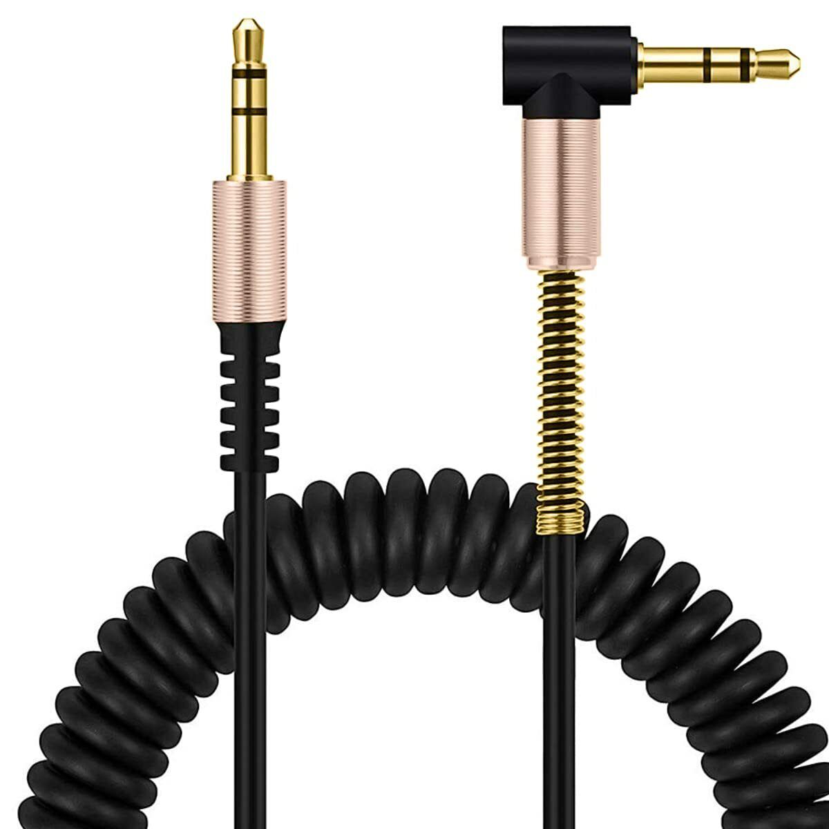 3.5mm Audio Aux Cable Coiled Male to Male Stereo Jack iPhone Car PC Headphone UK