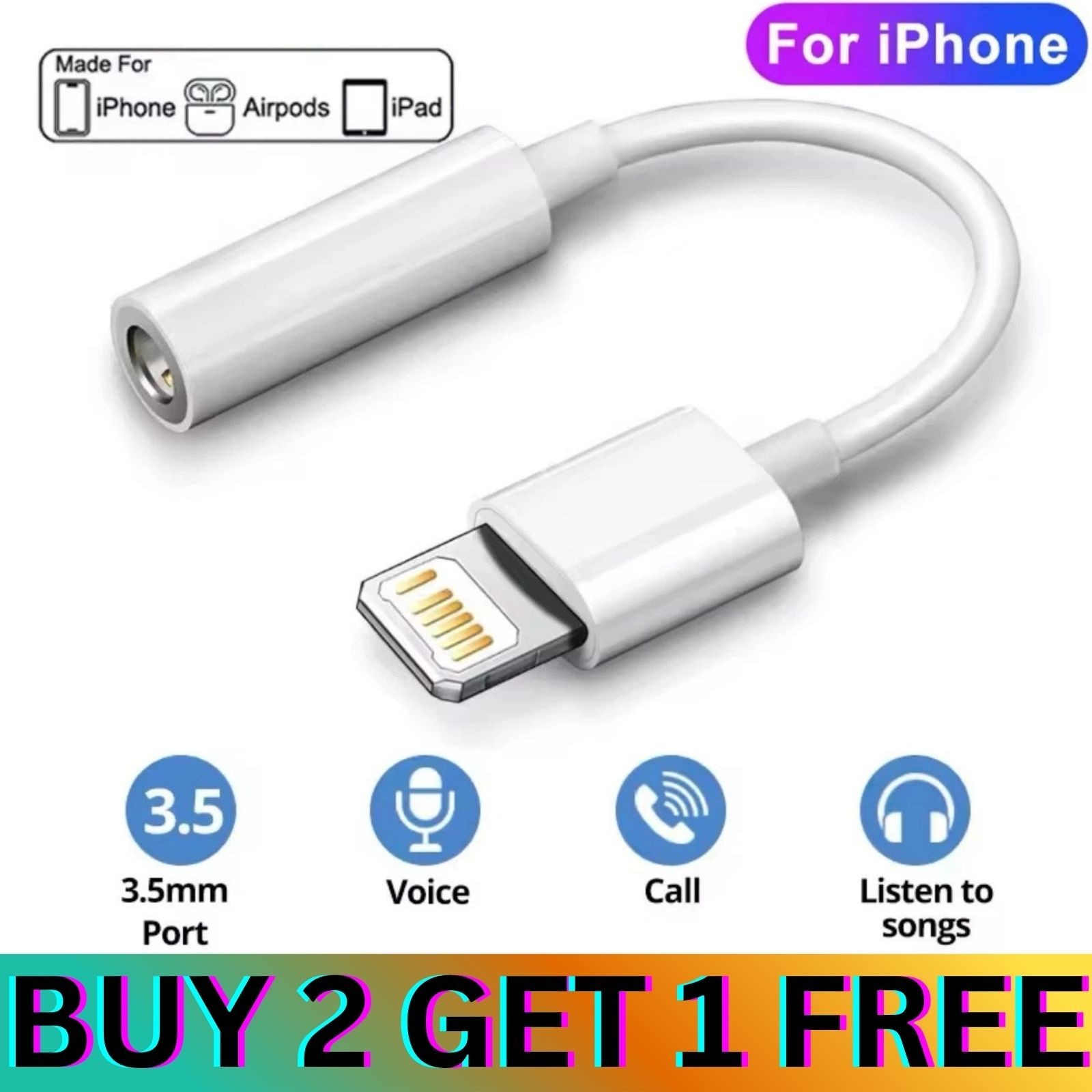 Adapter for iPhone to 3.5mm Aux Headphone Jack Adaptor All IOS Devices✅