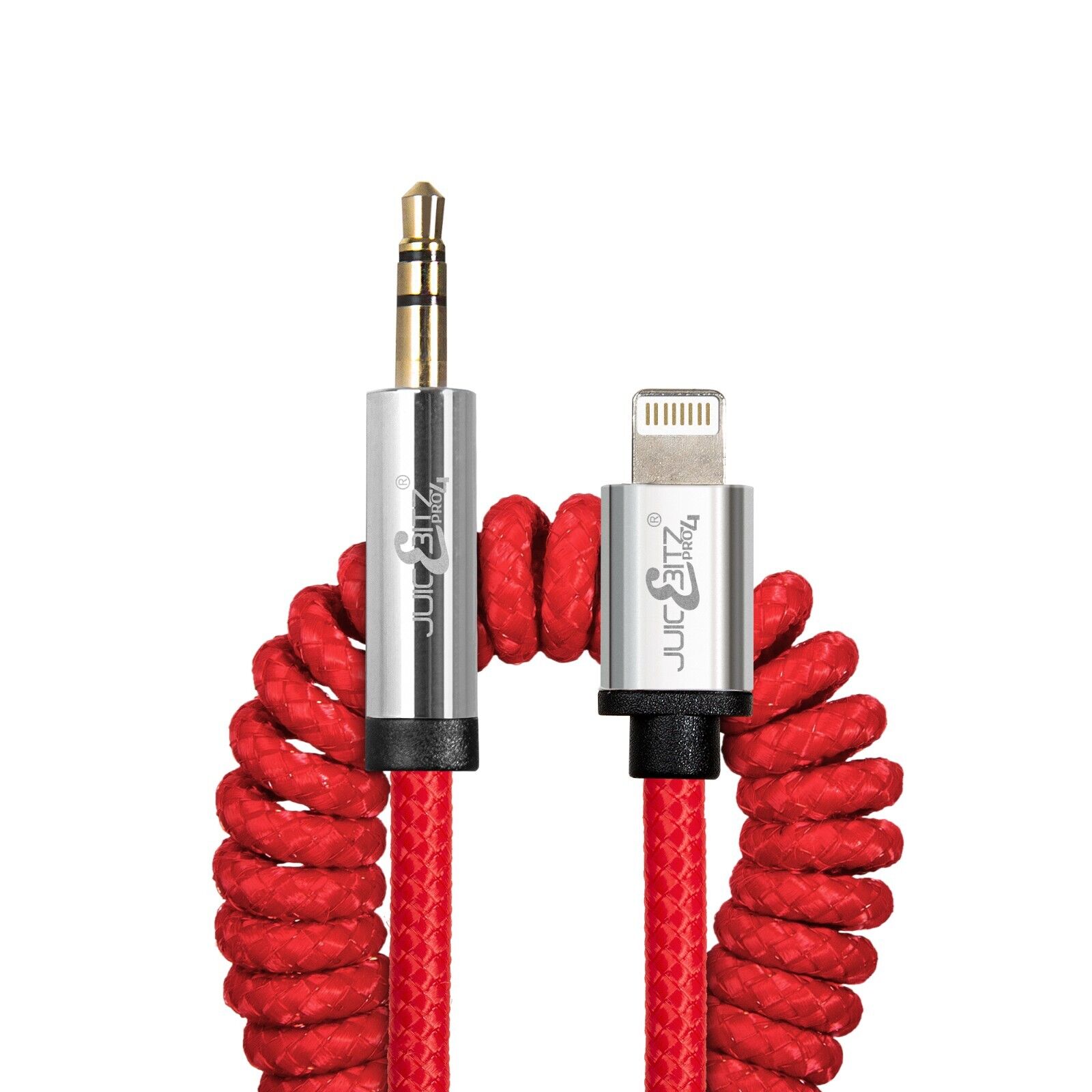 JuicEBitz® 3.5mm Braided Coiled AUX to 8PIN Stereo Jack Lead for iPhone & iPad