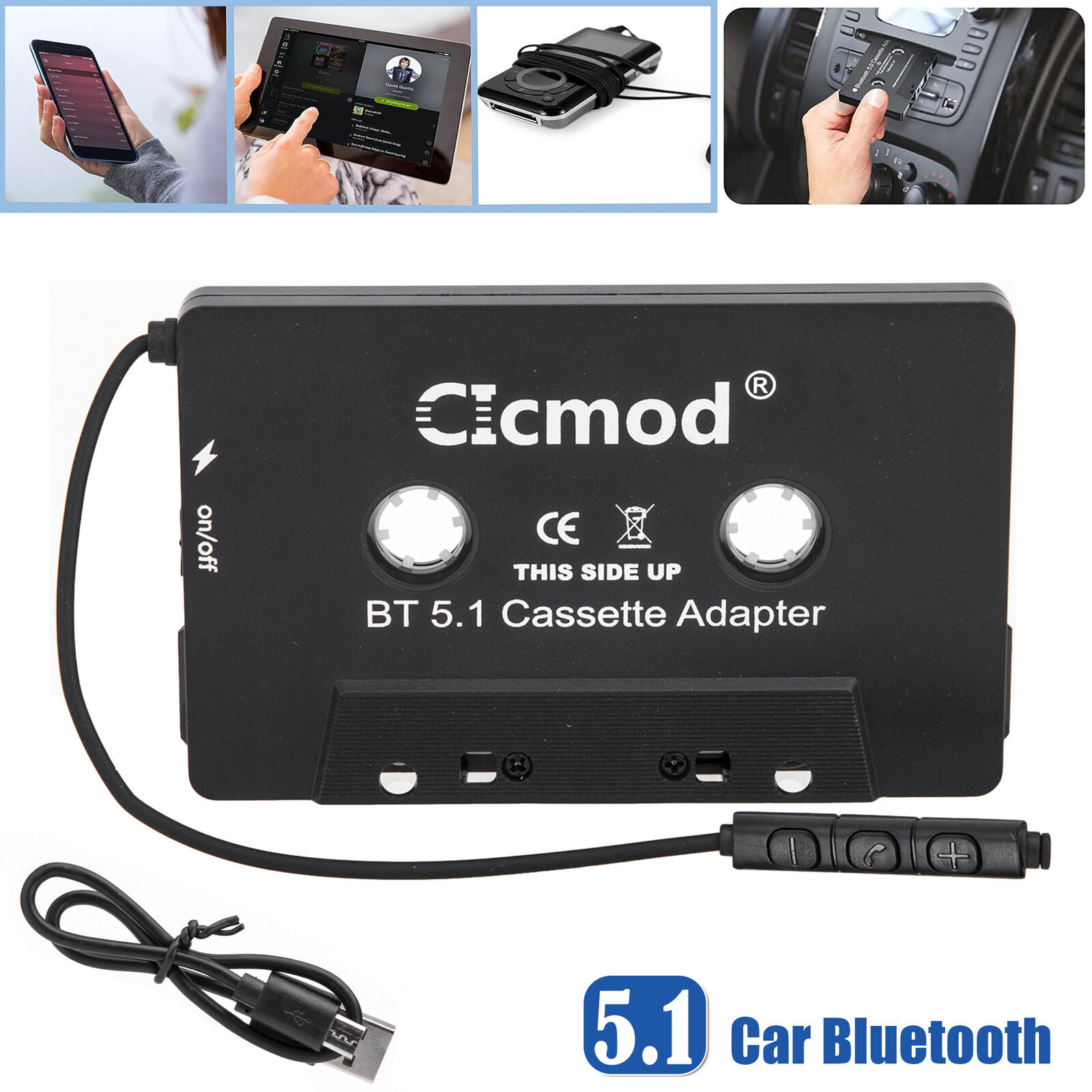 CAR STEREO AUDIO TAPE CASSETTE ADAPTER TO AUX BLUETOOTH 5.1 FOR IPHONE IPOD MP3