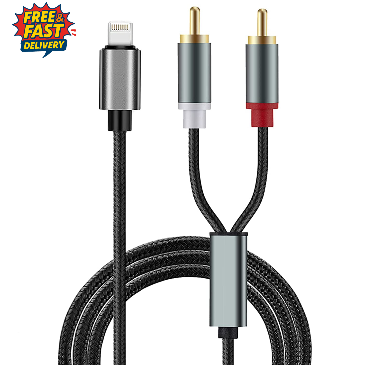 RCA Aux Cable for Iphone, 2-Male RCA to IOS Adapter, Iphone to Aux Cable, Audio