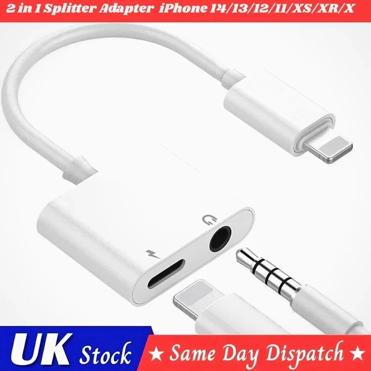 2in1 Adapter AUX Headphone Jack Charger To 3.5mm Splitter for IPhone 14 13 12 11