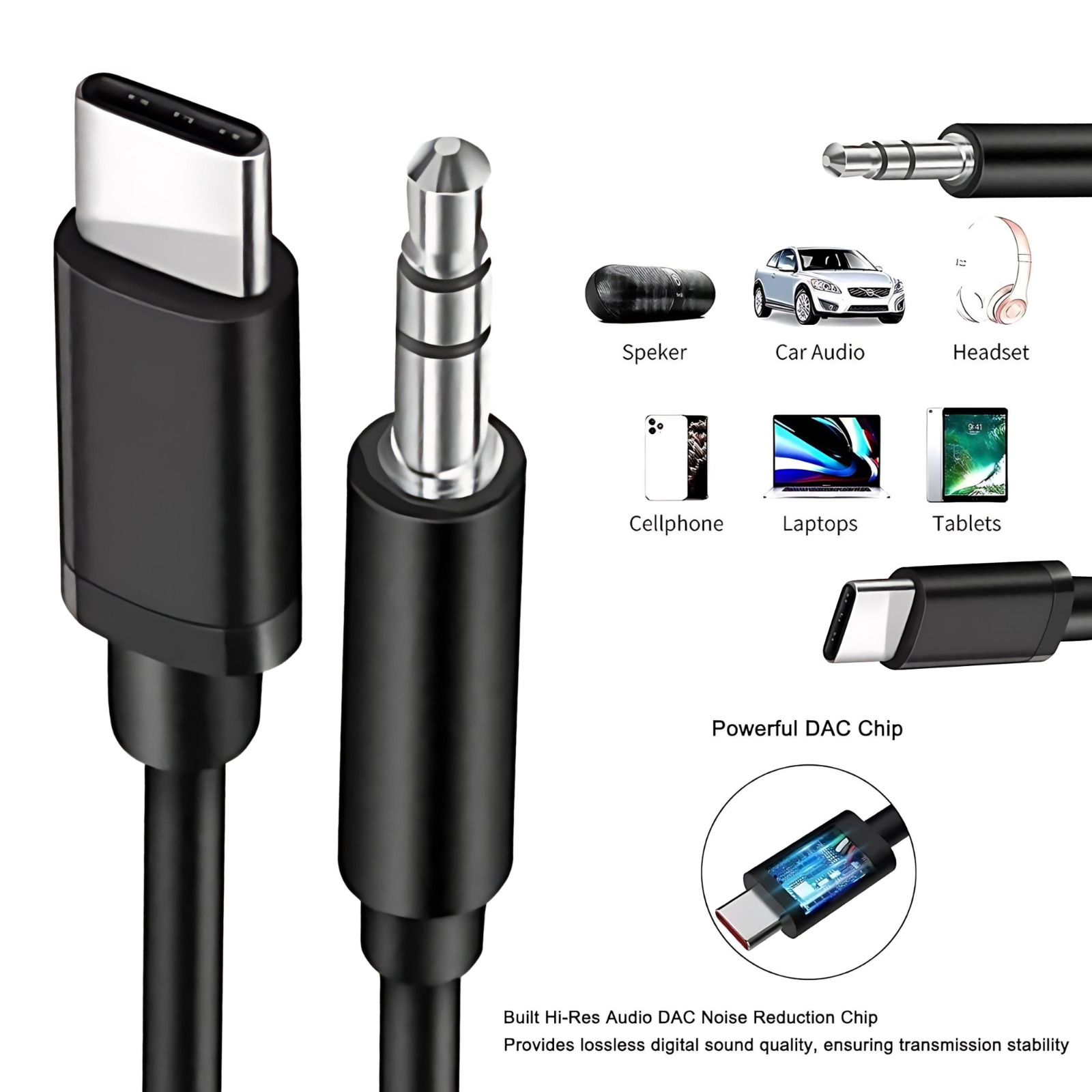 USB C Aux Cable Type C To 3.5mm Car Audio Music for Apple iPhone 15 Plus Pro Max