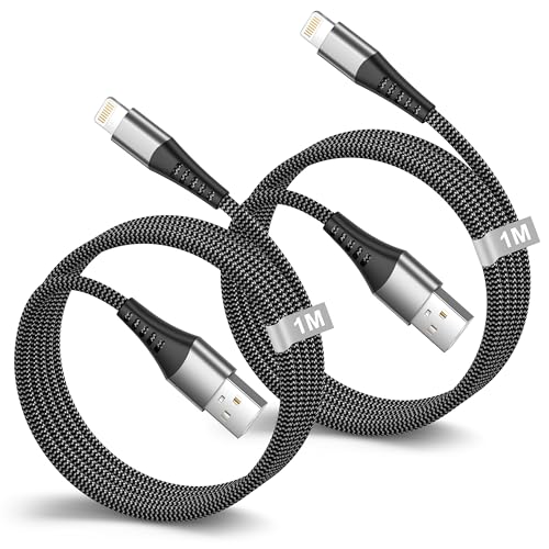 iPhone Charger Cable 1M 2Pack, [Apple MFi Certified] USB to Lightning Cable 1M Long iPhone Charging Cable Nylon Braided IPhone Fast Charger Cable Lead Wire for iphone 14/13/12/11 Pro Max/XS/8/SE/iPad