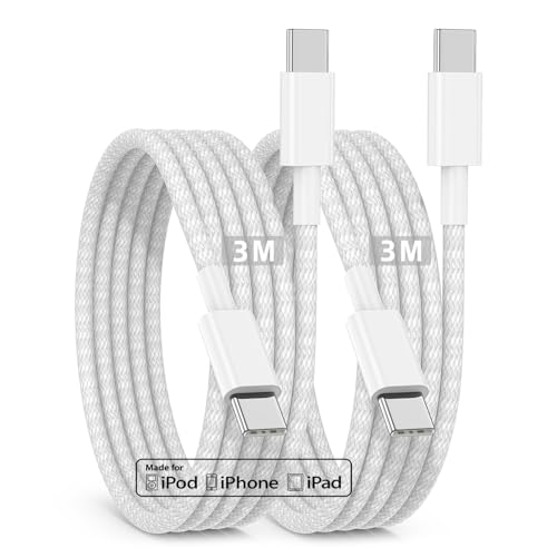 USB C to USB C Charger Cable 3M, 2Pack 3M iPhone 17 16 15 Charger Cable Lead 60W, Long Type C to C Charging Cable Wire for Apple iPhone 17 Pro Max/17 Air/16 Plus/16 Pro Max/15 Pro/15 Pro Max/iPad Pro