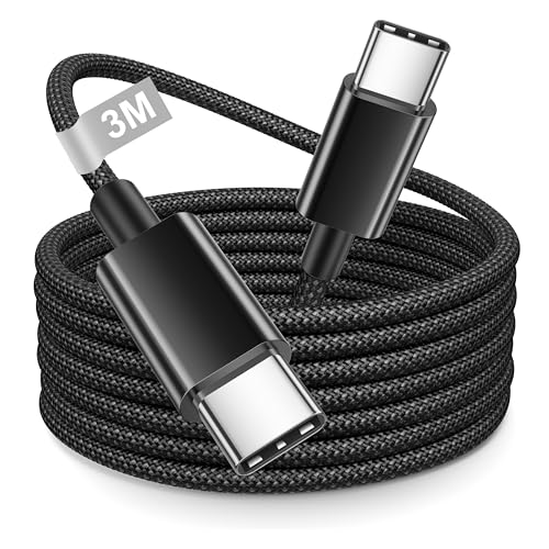 100W USB C to USB C Cable 3M, Type C Charger Cable Fast Charging 3M Braided Extra Long iPhone Charger cable Wire Lead for iPhone 17 16 15 17Pro Max/Plus, iPad Pro/Air, MacBook Pro/Air, Samsung S25/S24
