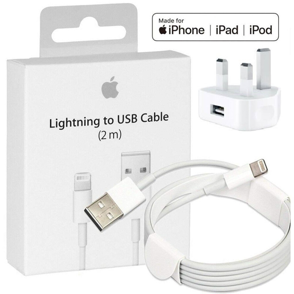 5W USB Power UK Plug Charger Adapter / 2m Fast Charge Cable For iPhone 7 8 Xr 11 Pro Max