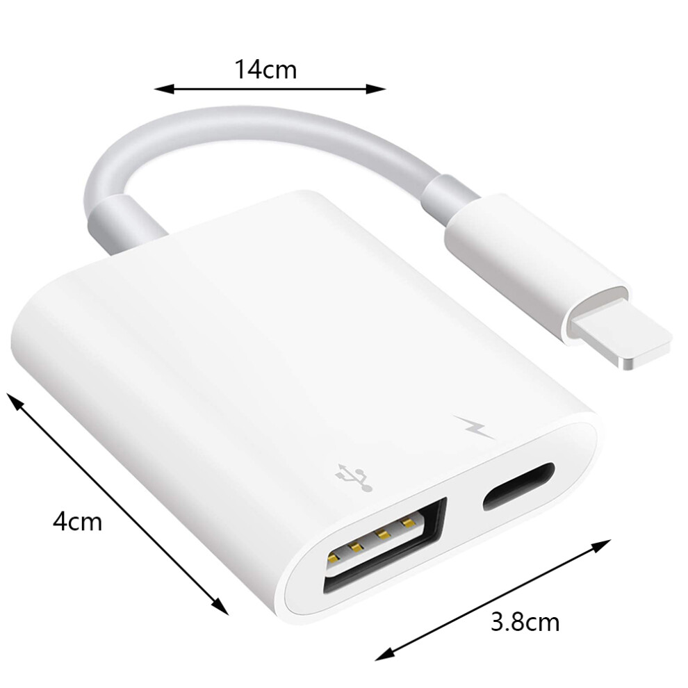 OTG Cable with Charging Port for iPhone iPad, USB Camera Adapter for Plug and Play Data Transfer, Compatible with Digital Camera Memory Card Reader