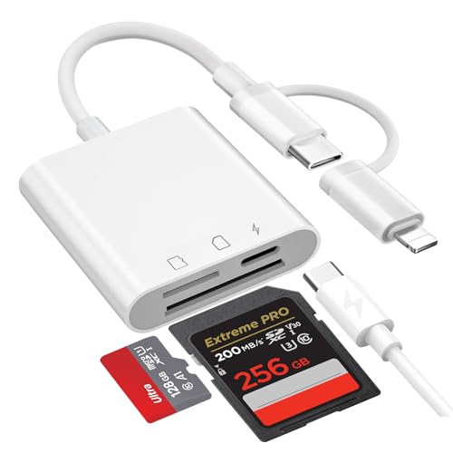 SD Card Reader for iPhone iPad, Lightning & USB C SD Card Reader with Micro SD & SD Dual Slot and USB Port, Camera Card Viewer Photography Memory Card Adapter