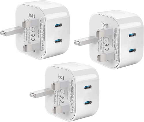 Bediaca USB C Plug,20W 3 Pack USBC Wall Plug Fast Charger Plug UK Compatible with iPhone 16/15/15 Pro/15 Pro Max/14/14 Pro/13/13 Pro/12/12 Pro/11/ipad,Dual Port USBC Charging Plug for Watch/ipad