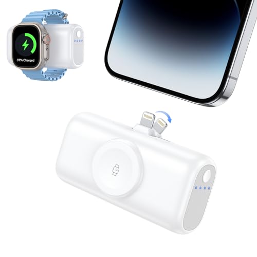 Power Bank, ADADPU-Portable Charger with Built-In Foldable Lighting Connector, for iphone 14/13/12/11/XR/X/8, Wireless Charger for Apple Watch Series 9/Ultra2/8/Ultra/7/6/5/4/3/SE6/5/5 Pro