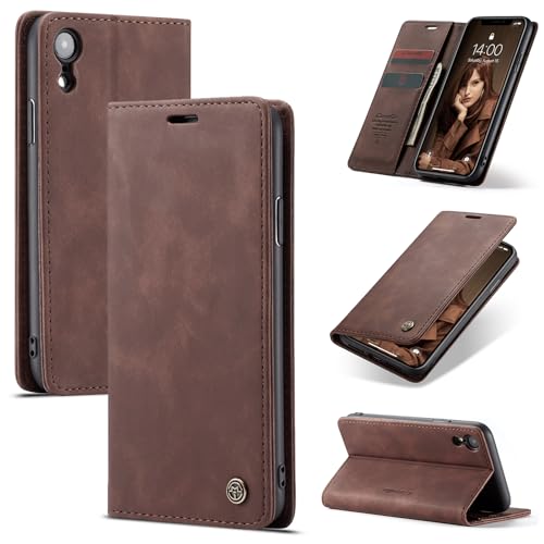 Cracedily for iPhone XR 6.1-Inch Case, Wallet Case Flip Leather with Card Holder Magnetic Closure Shockproof Kickstand Protective Phone Cases Cover for iPhone XR, Coffee