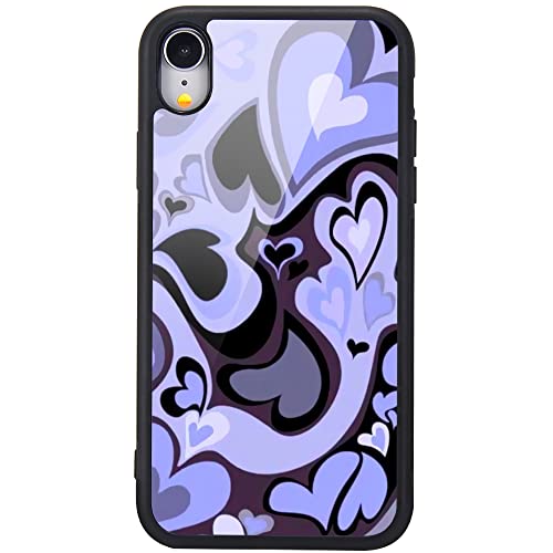 MAYCARI Aesthetic Cute Purple Heart Printed Cases for iPhone XR,Cute Slim Soft TPU Hard Back Shatter-Resistant Shockproof Anti-Fall Protective Girly Painting Art Cover Case for Girls Women Children