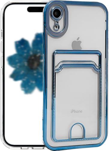 Riccase for iPhone XR Clear Case with Card Holder, Shockproof Transparent Soft TPU Protective Bumper Slim Cute for iPhone XR Phone Cases, Blue