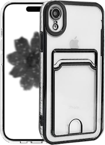 Riccase for iPhone XR Clear Case with Card Holder, Shockproof Transparent Soft TPU Protective Bumper Slim Cute for iPhone XR Phone Cases, Black