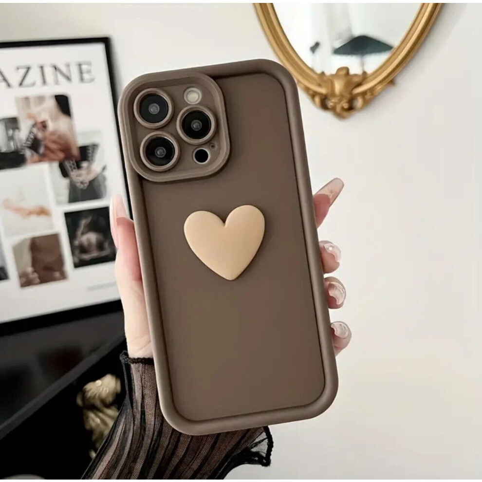 (Brown, For Iphone 15) Cases For Iphone 16 15 14 13 12Max Plus ShookProof love heart Silicon TPU Cover