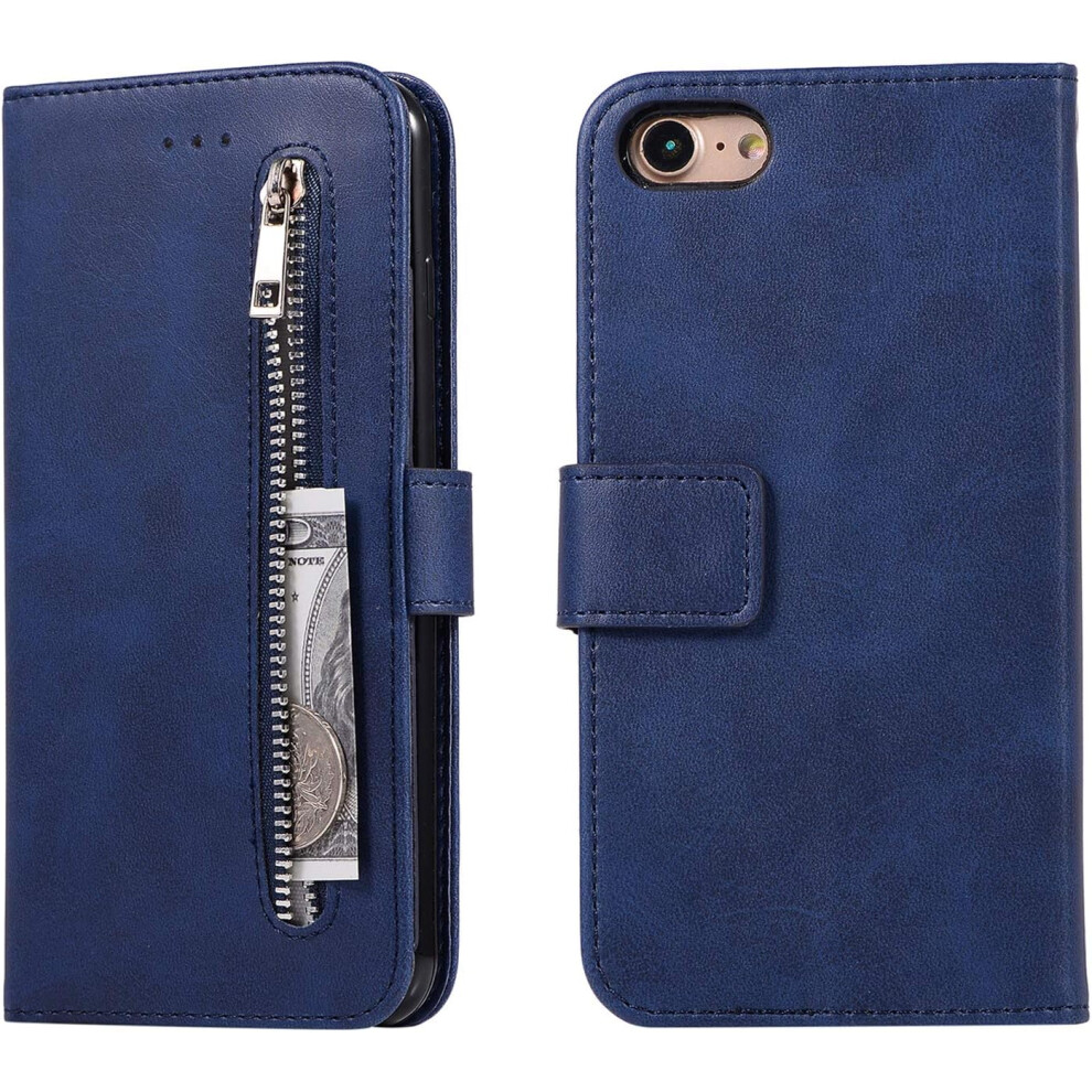 Wallet Case for iPhone SE(5G) 2022 iPhone7 iPhone8 iPhone SE 2020, 5 Card Slots Handbag Leather Flip Case with Wrist Strap TPU Kickstand Cover-blue