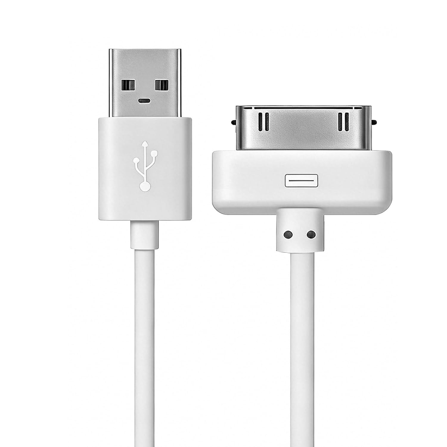 PluX USB to 30-Pin Charger Cable, Fast Charging Data Cord Compatible With iPhone 4/4S/3G/3GS, iPad 1/2/3, iPod Touch/Classic, Old 30-Pin Devices, 1M, White