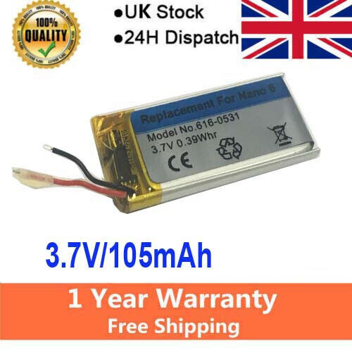 Battery For Apple iPod Nano 6 6G 6th Generation 616-0531 105mAh Replacement UK