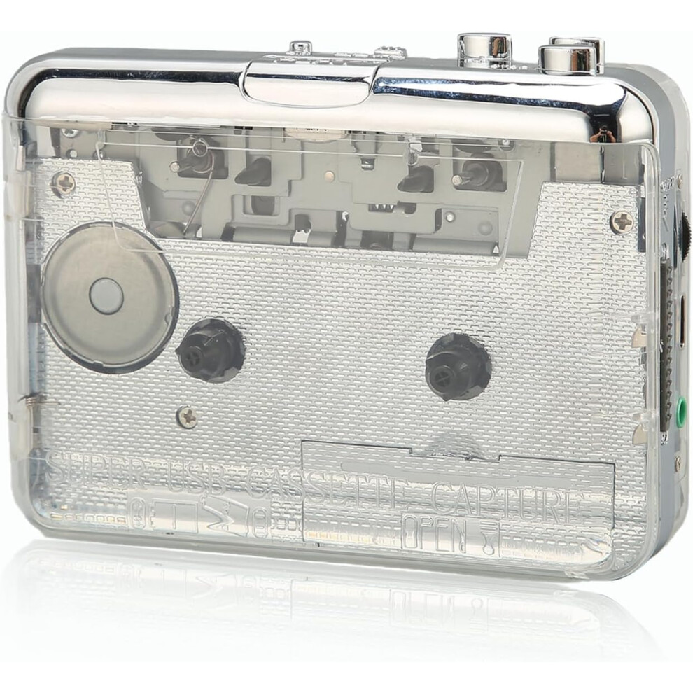 Reshow Cassette Player – Portable Tape Player Captures MP3 Audio Music via USB – Compatible with Laptops and Personal Computers – Convert Walkman Tape Cassettes to iPod Format (Silver)
