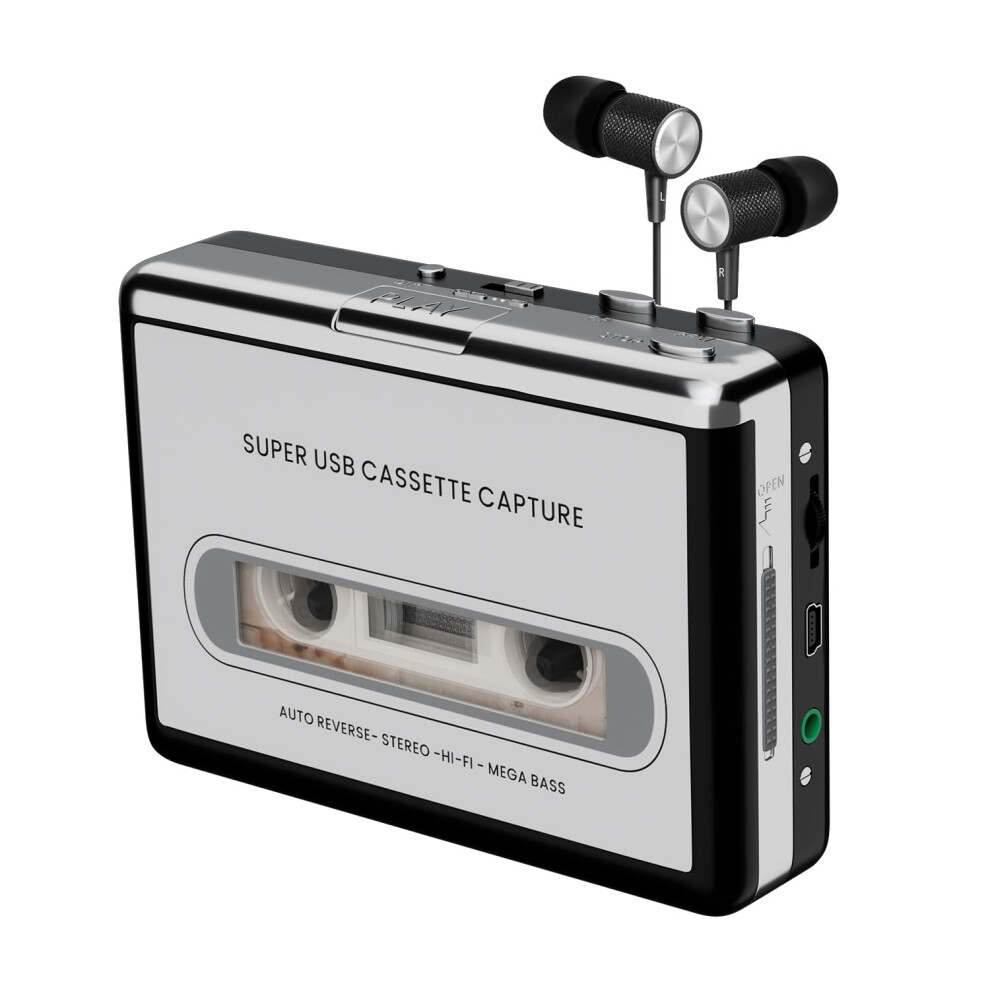 Reshow Cassette Player – Portable Tape Player Captures MP3 Audio Music via USB – Compatible with Laptops and Personal Computers – Convert Tape Cassettes to iPod Format (Silver)