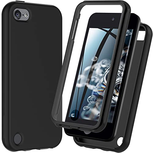 for iPod Touch 7th/6th/5th Generation Case, for iPod Touch case, Shockproof Silicone [with Built in Screen Protector] Full Body Heavy Duty Rugged Cover (Black)
