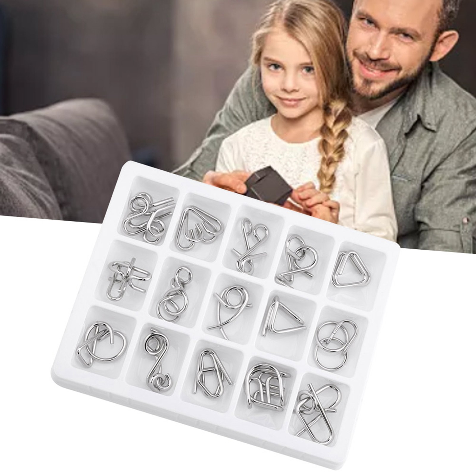 15Pcs In 1 Set Kids Children Metal Wire Puzzle IQ Mind Brain Teaser Puzzles Fit