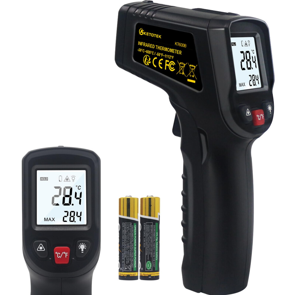 KETOTEK Infrared Thermometer IR Non Contact, Digital Laser Temperature Gun -50?~600? (-58?~1112?) Adjustable Emissivity Thermometer Gun for Cooking