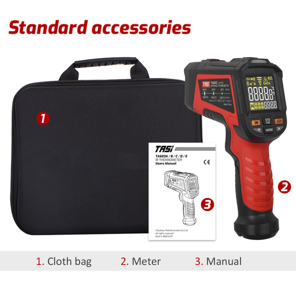 TASI Laser Infrared Thermometer Non-Contact Digital Temperature Machine -32~1080 (-26~1976) IR Thermometer with Color Screen and Adjust