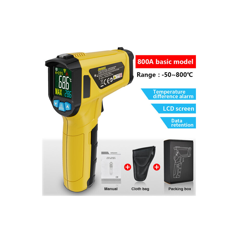 (800A) -50~800 LCD Color Display Non-Contact Infrared Thermometer High Temperature Infrared Laser Electronic Thermometer IR Thermometer Pyrometer