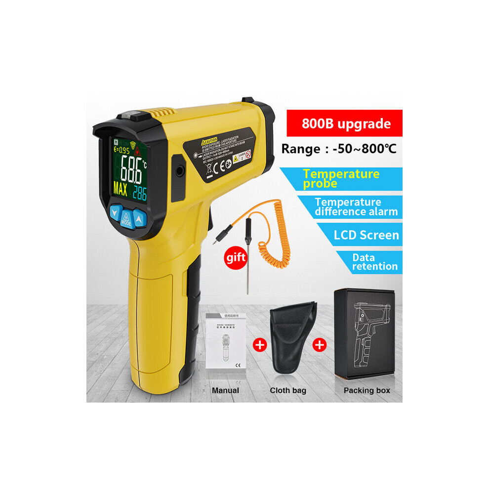 (800B) -50~800 LCD Color Display Non-Contact Infrared Thermometer High Temperature Infrared Laser Electronic Thermometer IR Thermometer Pyrometer