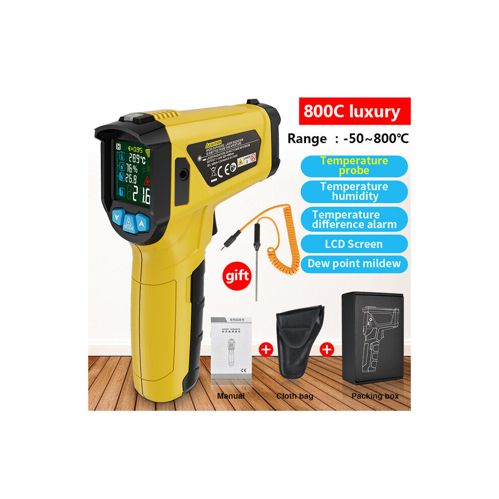 (800C) -50~800 LCD Color Display Non-Contact Infrared Thermometer High Temperature Infrared Laser Electronic Thermometer IR Thermometer Pyrometer
