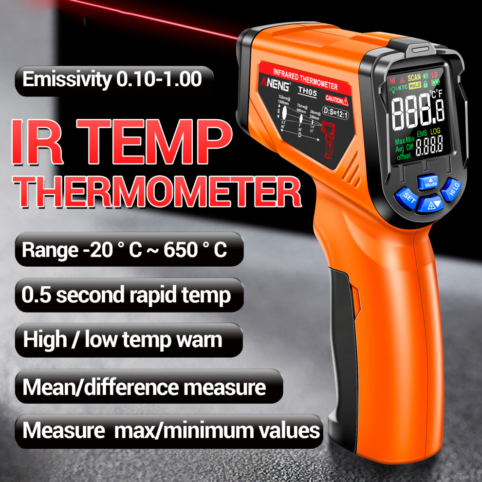 ANENG TH05 Non-Contact Infrared Thermometer -20~650/-4~1202 IR Laser Sensor Circuit Industrial Testing Floor Heating Tube Temperature T